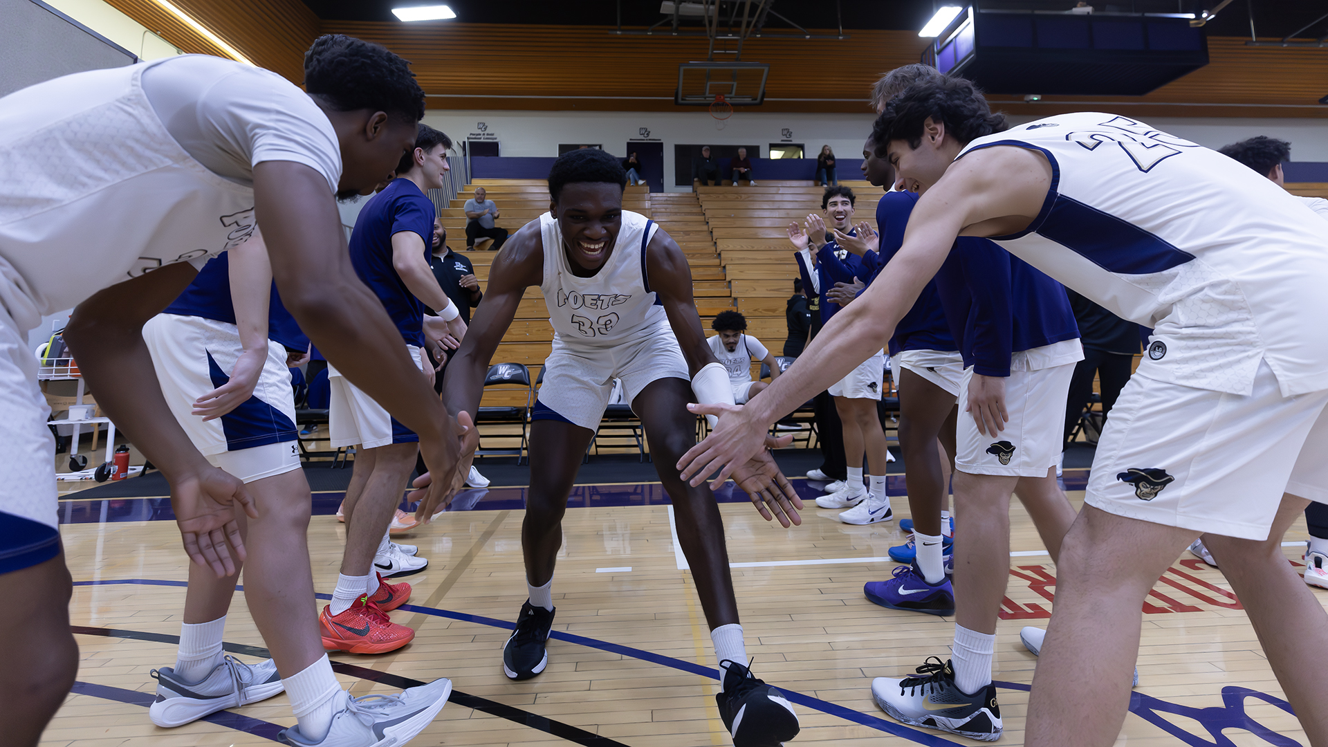 From there, both teams engaged in a sprint to the finish line, and thanks to Estep's outside scoring and Smith's ability to make plays in transition, the Poets remained competitive with the Lynx until the final whistle. Smith ultimately turned in another performance on par with what Poet fans have come to expect of him, scoring 24 points on 50 percent shooting. He also made his presence felt defensively with a trio of steals to lead the Purple & Gold, and also stood out as the only Poet to play more than 30 minutes. Meanwhile, 10 Whittier players logged at least 10 minute of action, while nine of 11 players registered points.